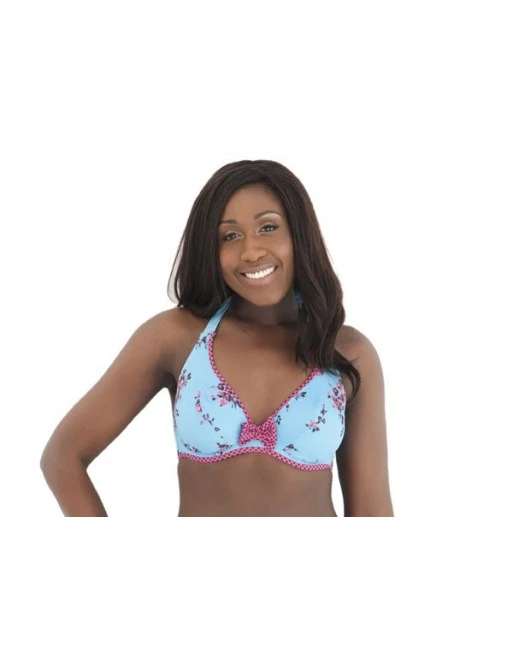 De Curvy Kate Swim Beach Bloom halter bikini beha heeft niet voorgevormde beha cups met een beugel