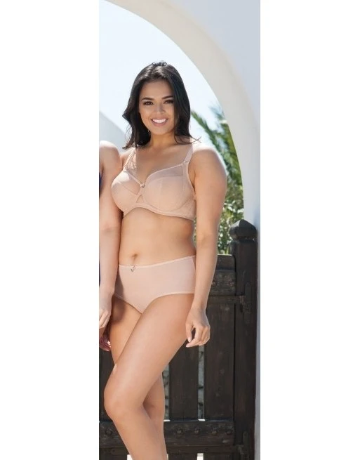 Hij is gemaakt van driedelige transparante tule cups met stevige beugel die een uitstekende ondersteuning van de borst tot de M cup mogelijk maken.