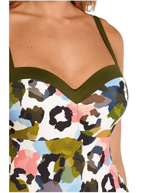 Dit Dolores Cortés badpak zonder beugel, uitgevoerd in control shapewear heeft een fleurige look en is een blikvanger.