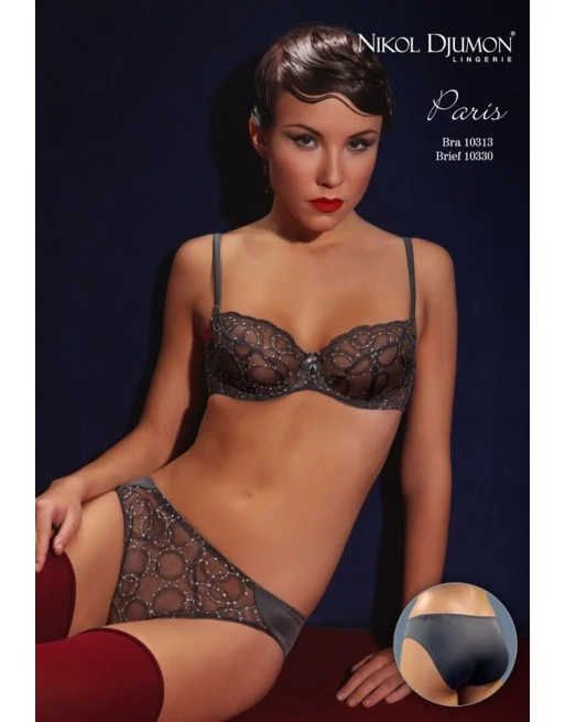 De Paris beha van Nikol Djumon heeft een met lurex bewerkte beha cup..