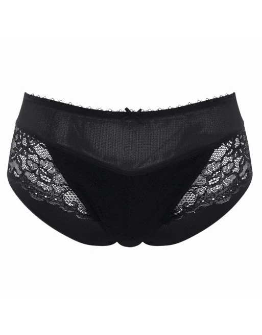 Wordt gedragen in combinatie met de bijpassende Jasmine beha maar kan ook perfect gedragen worden met elke zwarte beha.