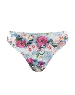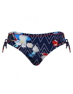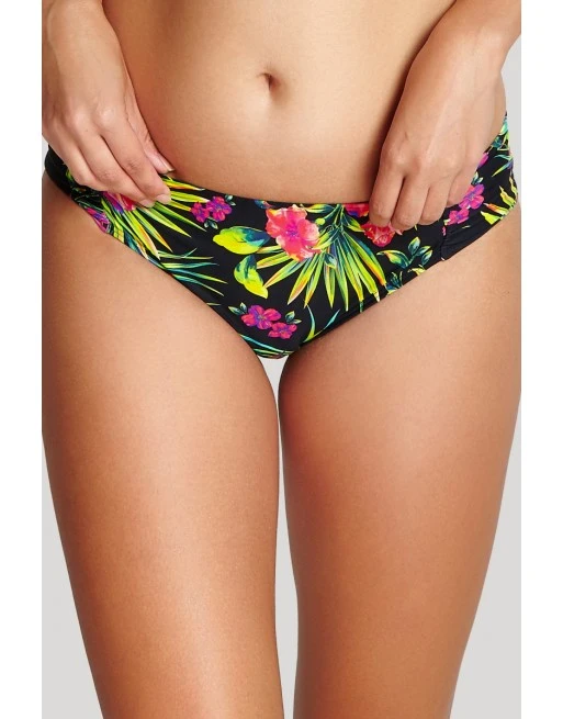 De Panache Swim Anya Riva print bikini slip is uitgevoerd in een fleurige palm print op een zwarte onderlaag.
