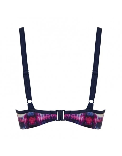 De Panache Swim balconnet bikini beha Elle is uitgevoerd in een fleurige pink multi print en afgewerkt met een contrasterende bies aan de bovenrand cup enschouderbandjes.