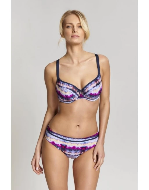 De Panache Swim bikini slip Elle is dit seizoen uitgevoerd in een fleurige pink multi print met een contrasterende bies.