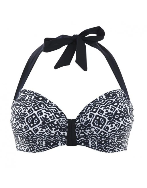 De Panache Swim halter bikini beha Sia heeft een brede halter nek band voor een goede pasvorm en is uitgevoerd in een decoratieve inktblauwe etnische print.