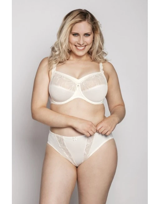 De hele cup beha grote maten – grote cupmaten Ulla Dessous Carmen heeft een hoge applicatie aan de bovenrand van de beha cup (een blende) voor exclusief comfort.