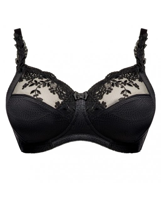 De Ulla Dessous Ella beha zonder beugel is uitgevoerd met hoogwaardige broderie bewerkingen die de beha exclusieve, doch discrete accenten geeft.